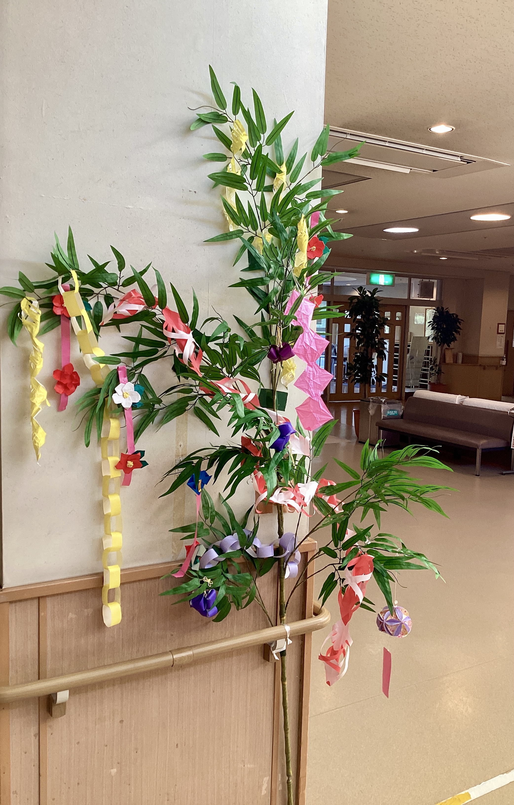 ご利用者様といろんなアイデアを出し合って今年の七夕飾りを作りました。願いを込めて短冊も書き、一緒に飾っています。